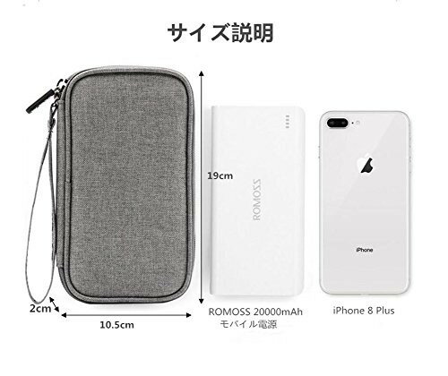 収納力抜群サイズ:19*10.5*2cm 重さ:約100g トラベルポーチは、各種小さいものを収納するのため設計します(PC周辺/携帯周辺/モバイルバッテリー/ケーブルなど小物用 整理 バッグ)。