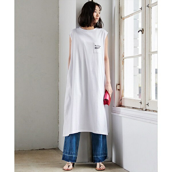 ラナンの<コンバース>フレンチスリーブAラインワンピ胸ポケットにシンプルなコンバースのロゴがデザインされたワンピース。